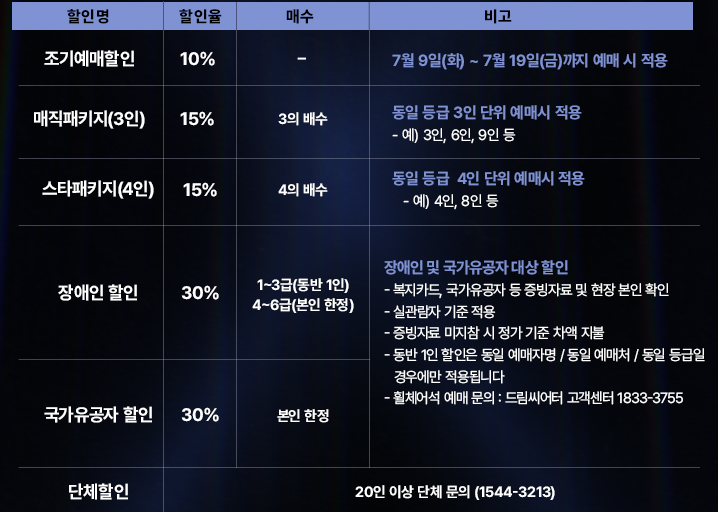 결론먼저 얘기드리면 서울은 7월 15일까지 예약시 10%할인 받을 수 있고 부산,대구,전주,고양은 7월19일까지 예매시 10%할인 받을 수 있어요. 10%할인 기회 놓치지 마세요.